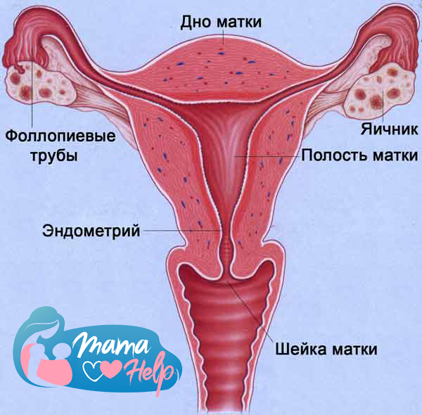 Матка — орган в форме перевернутого бокала, расположенный в полости таза. К верхним углам матки прикрепляются фаллопиевы трубы, соединяющие ее с яичниками. Нижняя часть называется шейкой матки.